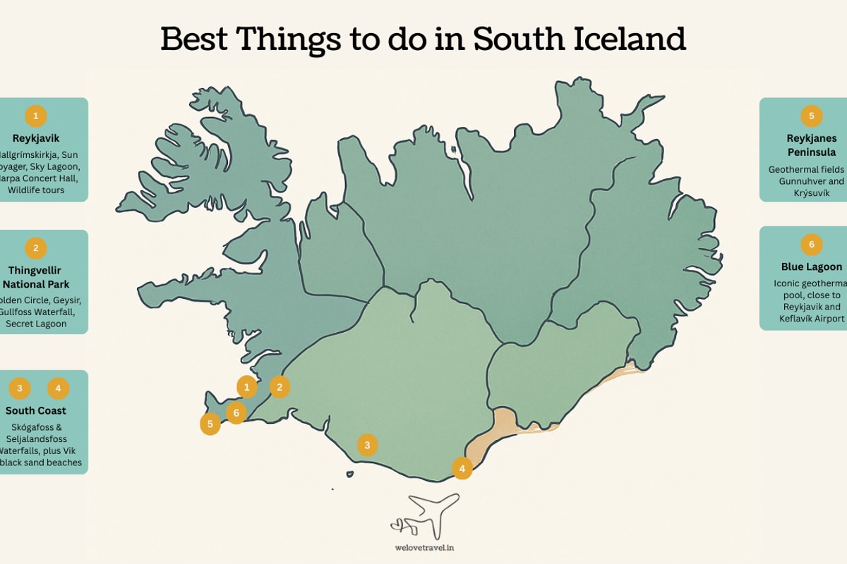 We have categorised this post into those key areas and added locations for each in the below map. Blue for Reykjavik. Orange for Thingvellir National Park. Teal for the South Coast and Vik. Maroon for Reykjanes Peninsula and Blue Lagoon. Making it easy to help you plan your day-by-day itinerary of the best things to do in Iceland!