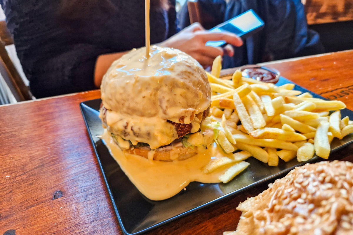 Coming up to lunchtime and feeling suitably hungry after exploring the city centre, we made our way to Kushmeister, a cosy, "no frills", student-vibe restaurant serving burgers that we had heard epic things about, particularly as they also served veggie and vegan options too - but the star of the show was having the option to order my burger drowned in a dousing of melted cheese. Again, another classic plate of German beige, but I regretted nothing! It was incredible!