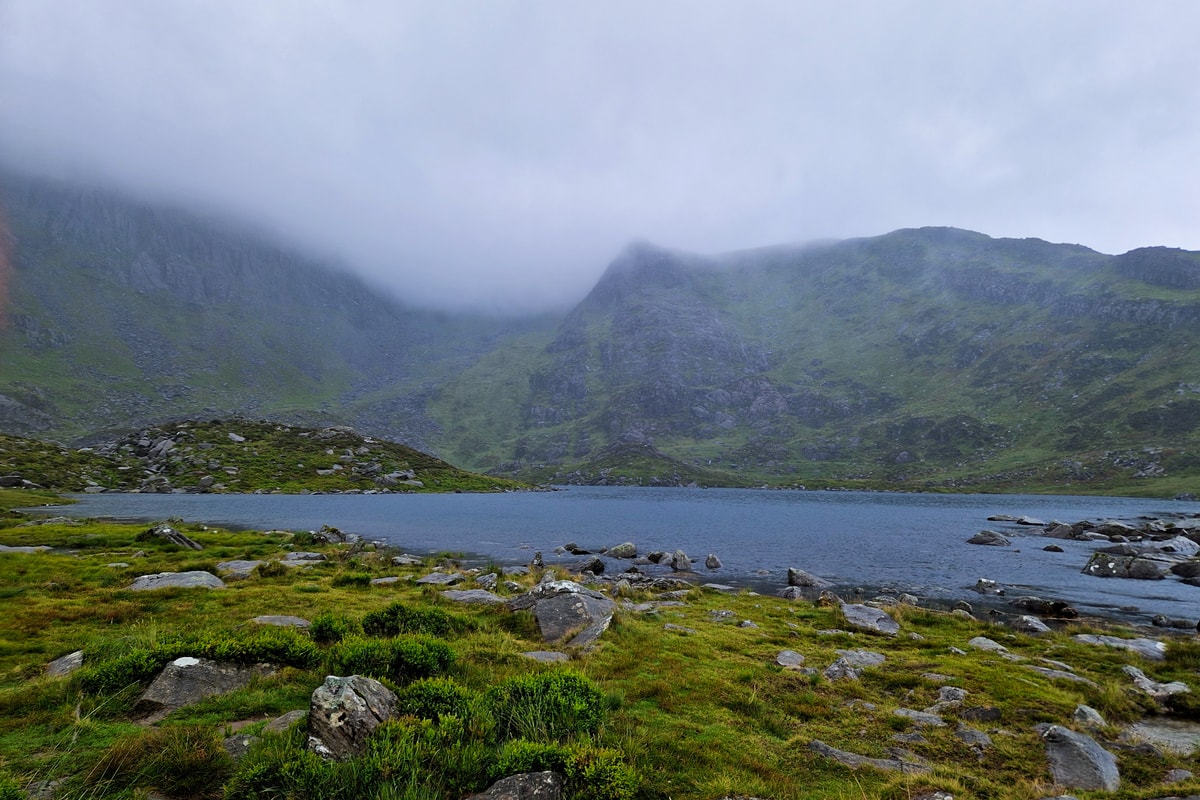The rugged and mountainous views were made all the more stunning and dramatic by the low level cloud that started to roll in and drape itself elegantly over the top of the mountains. I could have stayed there all day. But the summit of Tryfan was beckoning us, and aware that some bad weather was rolling in, we wanted to get ahead.