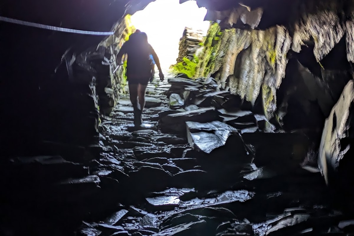 The bus journey only takes about 5 minutes, but the views along the way are spectacular, overlooking old mining routes from decades ago, carved out in the mountainsides. Once off the bus, the adventure began straight away with a short trek through part of the slate mine tunnels, which was very cool!