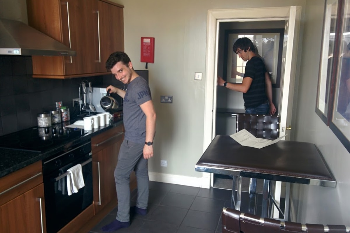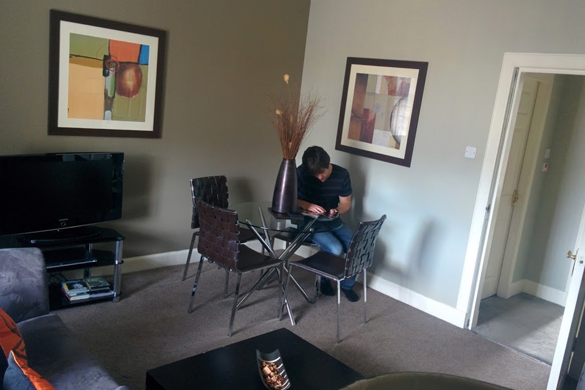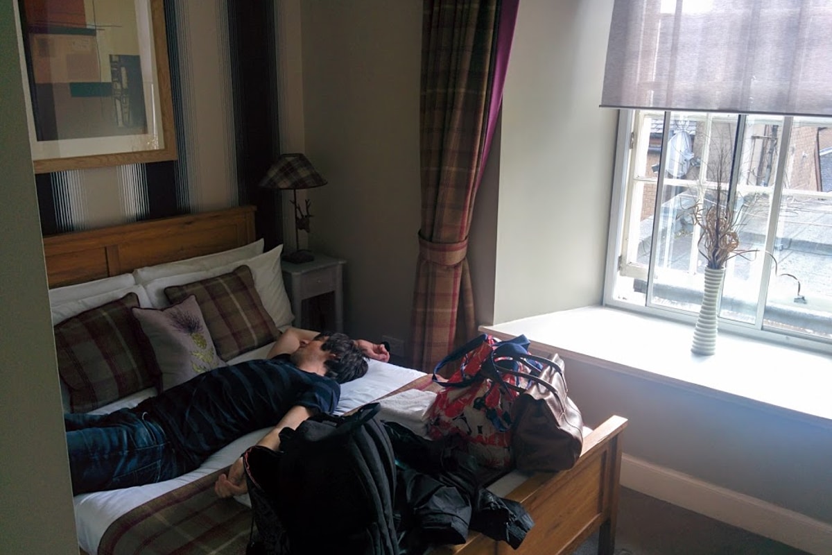 We booked an apartment for our trip, which was the amazing Nicholson Apartments. The place was amazing value, we paid about £400 total (so £100 each), for 5 days, 4 nights. This gave us 2 double bedrooms, kitchen, bathroom and a lounge diner. They also gave us a welcome box of shortbread on arrival and more tea, coffee and sugar than we could use in a month! All the main amenities were also included (dishwasher and tablets, all cleaning products, ironing board), so we didn't want for anything during our stay. The only things we bought were milk (they'd only included the little milk capsules things in the fridge), some breakfast items and alcohol. The whole place was super clean and tidy and all the staff were really helpful and friendly when we checked in and out. I'd definitely stay here again. I've included some photos below so you can have a nose at what the rooms were like - most of which Oli is demonstrating in for you: