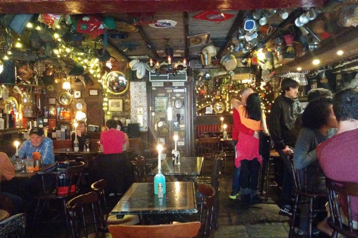 The outside of the bar is disguised as a barbers, you head down the stairs and behind a bookcase is a dark and intimate cocktail bar. Great vibe, great staff and great cocktails!