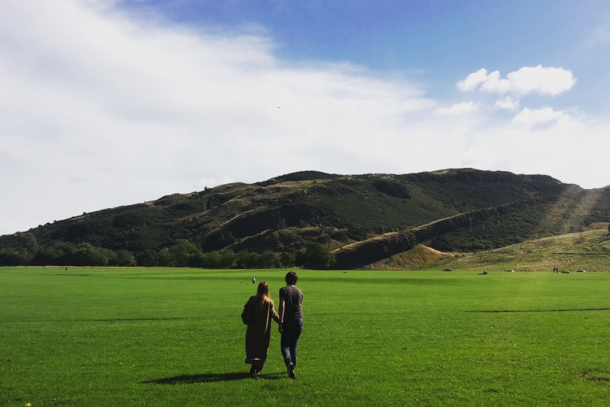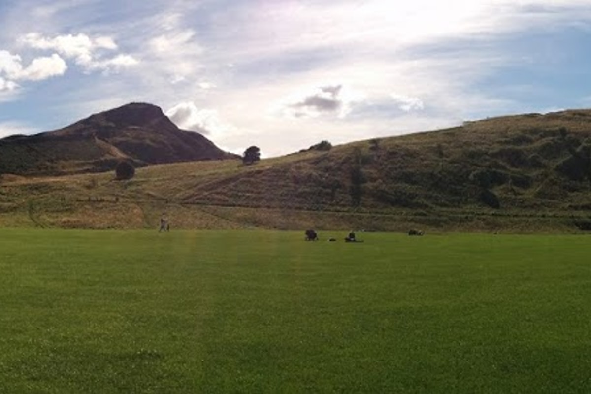 En-route to the abbey we had some great views up to Carlton Hill, and also behind Holyrood Abbey, we found a big open field with lovely views up to Arthur's Seat. So whilst me and Oli were upset we weren't able to climb it, at least we could look up at it and take in the views that way. It was sunny and hot by this point, so we laid in the sun for a bit and chilled out.