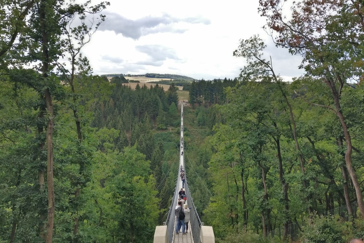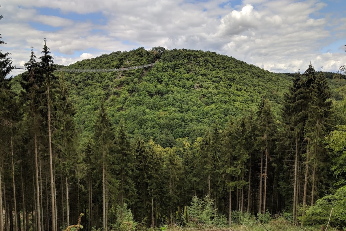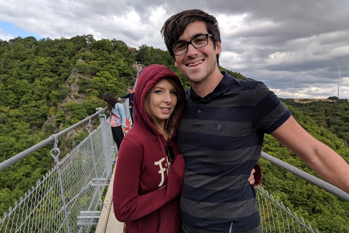 Opened in 2015, Geierlay is (an almost) 1,200ft long suspension bridge - the longest in Germany in fact - and 300ft above a canyon. I'm pretty fearless when it comes to these things, I don't mind heights or anything like that, so I happily marched out, whilst Oli behind me looked absolutely terrified! If you do have a fear of heights, this bridge probably isn't for the faint hearted. However, Oli was determined and set himself the challenge of crossing the bridge. As you approach the middle, it can feel a little uneasy. There is less tension in the bridge, so you sway about a lot more than at either end. But you are rewarded with the most beautiful views - surrounded by hills and trees. If it weren't for the others on the bridge with you, you wouldn't be able to hear a thing.