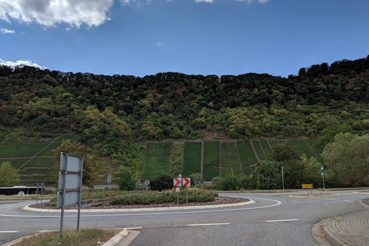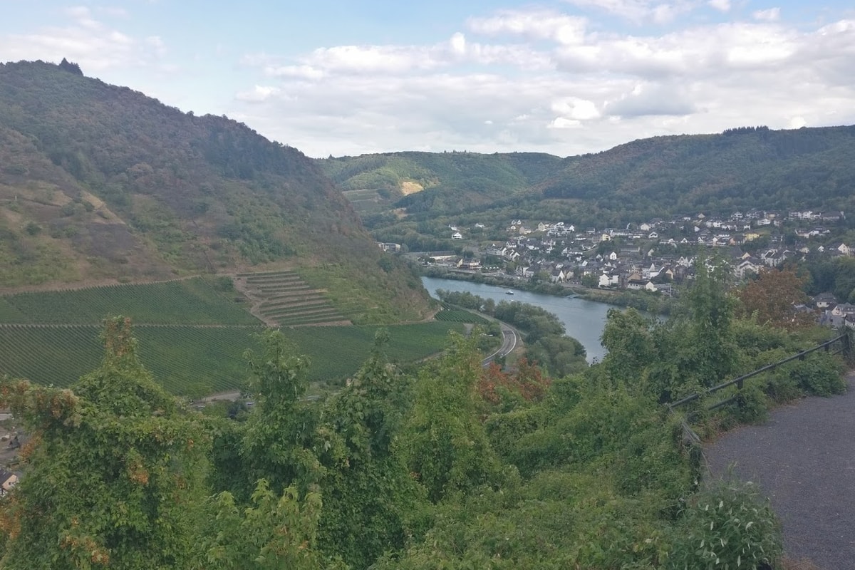 We drove five minutes up to the road to Bremm, which was the next biggest town up the river. We'd heard about the stunning views from Calmont Klettersteig, so we decided on a hot day in August, that we would go hiking to the top. It's a steep ole walk, and we were absolutely exhausted when we got to the top... But the views were so worth it! We parked up in the town, and walked up along the main road towards the vineyards, and then made our way higher and higher along a thin, twisty little track which went all amongst the vineyards. Bremm is just beautiful also, and this was the perfect start to our weekend in Rhineland.