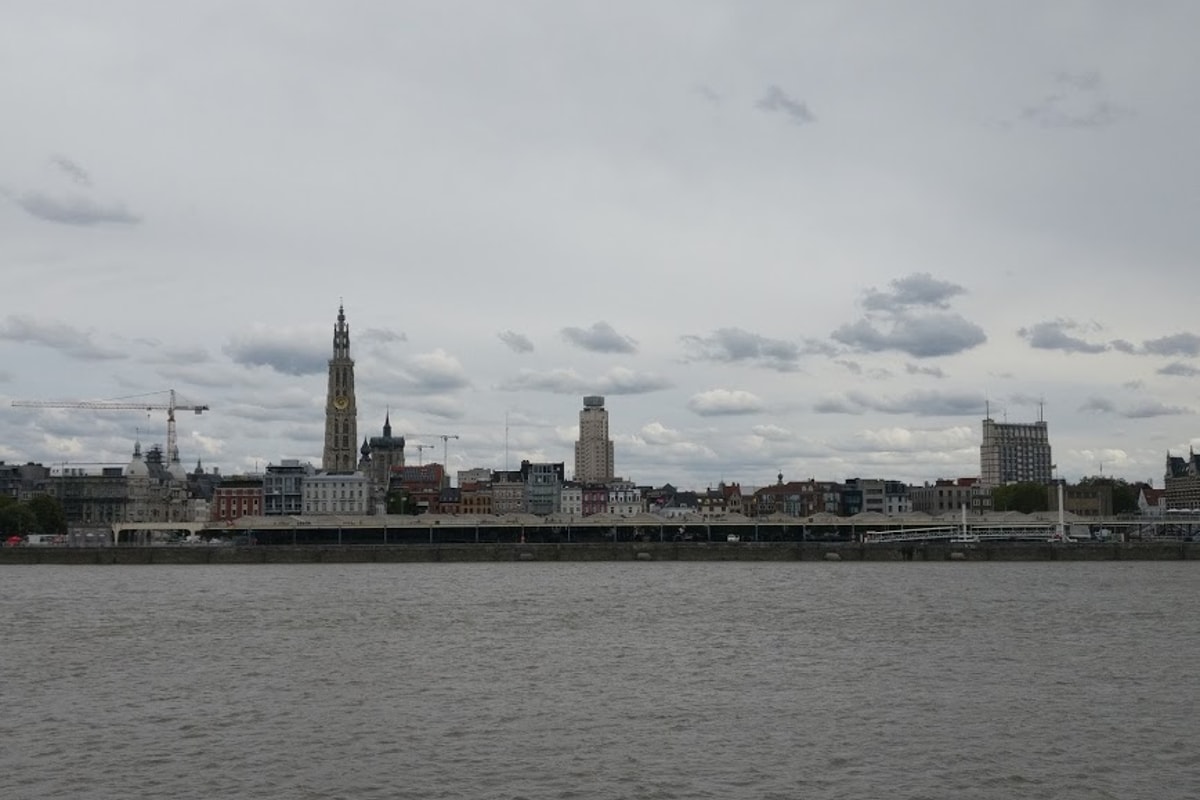 The tunnel is free to use and makes for an interesting walk when out and about exploring Antwerp. Once on the other side, there are some cool views along the river, looking out towards Antwerp City Centre.