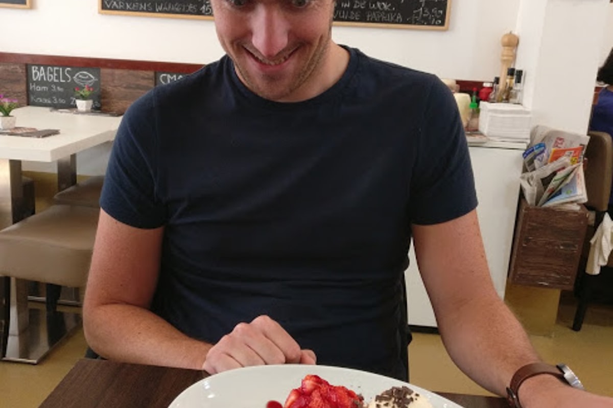 We were still holding out for breakfast though, so we grabbed a cup of tea in a local cafe and whiled away some time. Before we knew it it was 11am and we were sitting to enjoy the best waffles I've had in a very long time (probably since the last time we were in Belgium three years ago).