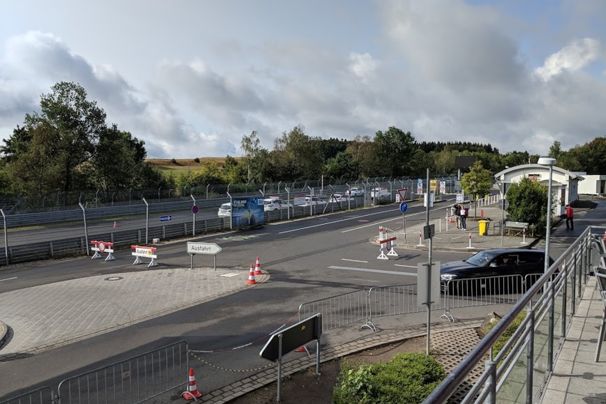 We parked up, before shortly realising we were in the wrong place and saw signs for Nordschleife. A short five minute drive later and we'd arrived at the tourist track entry. We were one of the first there (we arrived by about 10am, so still had one hour until the track opened and 1.5h until our booking). There's a cafe on-site (Devil's Diner), so we grabbed (more) breakfast and sat outside, watching everyone else arrive in their cars.